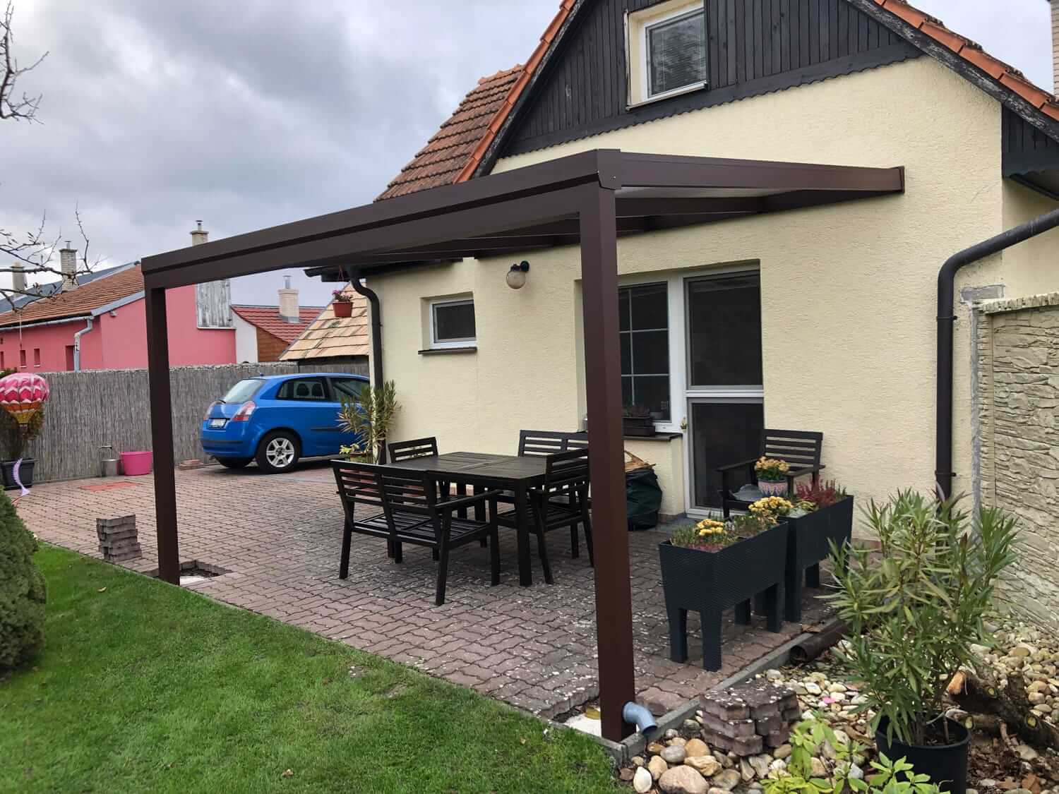 Konstrukci pergoly nabízíme v základních barvách – 7016 Antracit, 8017 Hnědá, 9006Sp Stříbrošedá a 9010 Bílá.