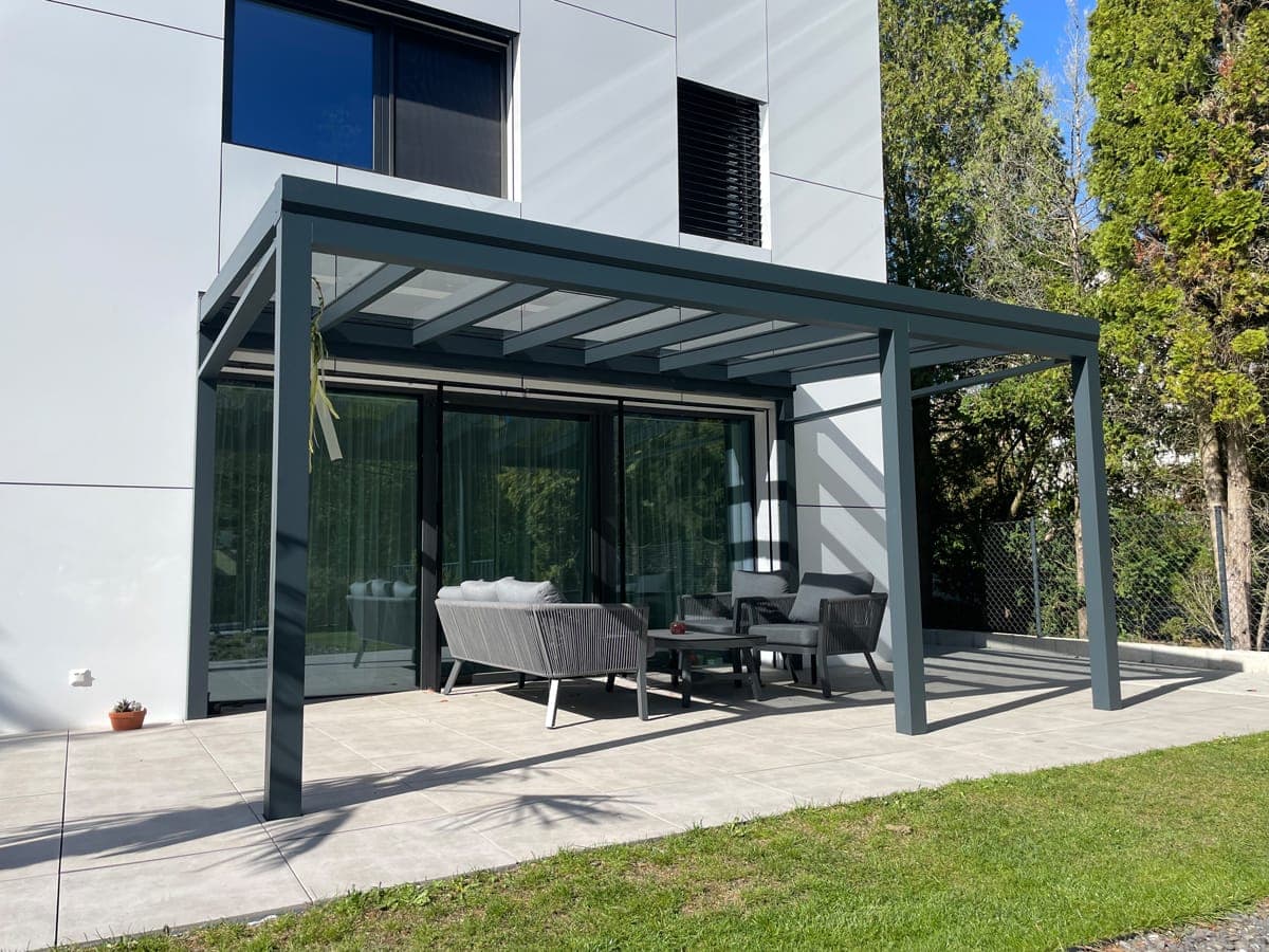 V případě výběru polykarbonátu nebo skla vám nabízíme možnost střechu dodatečně zastínit.