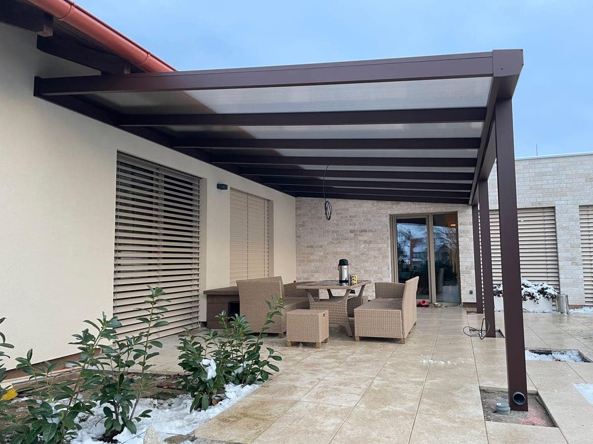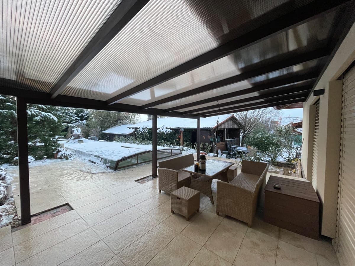 V případě výběru polykarbonátu nebo skla vám nabízíme možnost střechu dodatečně zastínit.