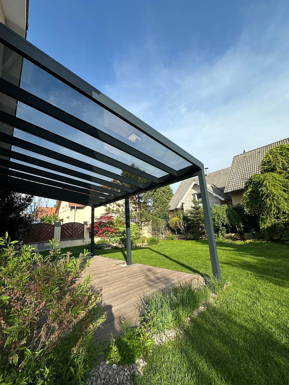 V případě výběru polykarbonátu nebo skla vám nabízíme možnost střechu dodatečně zastínit.