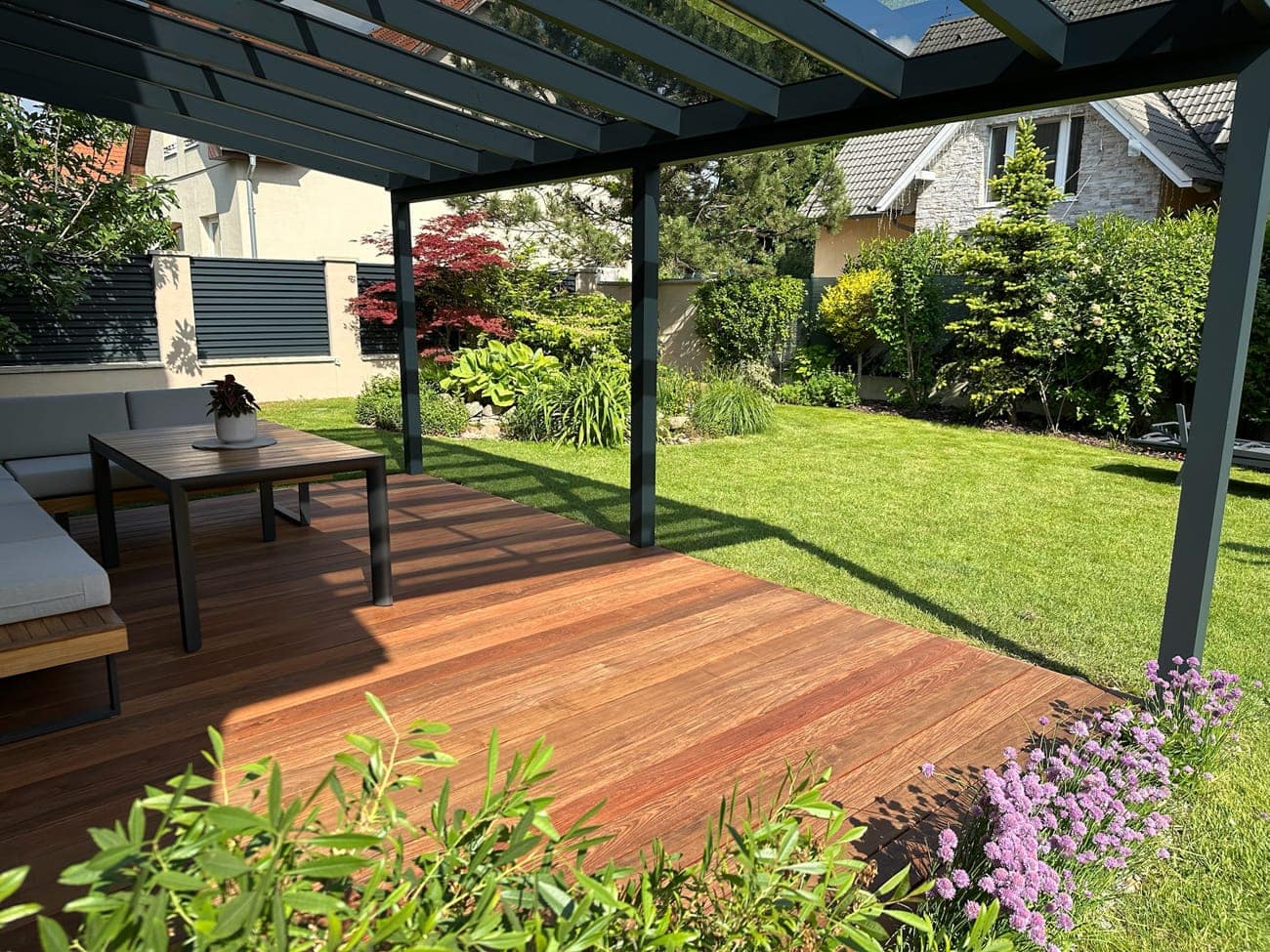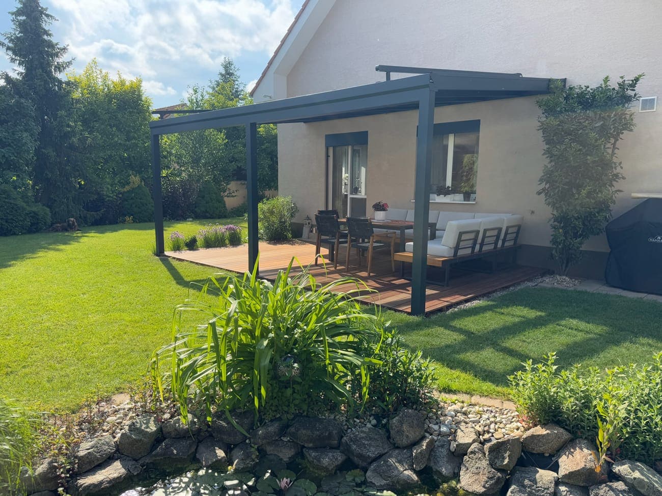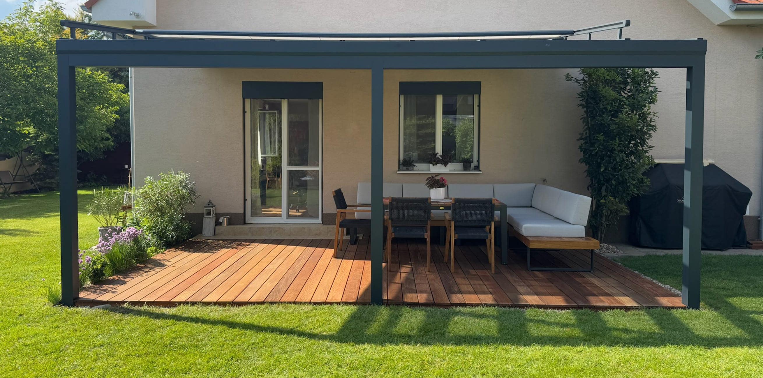 Hliníková pergola s dřevěnou terasou