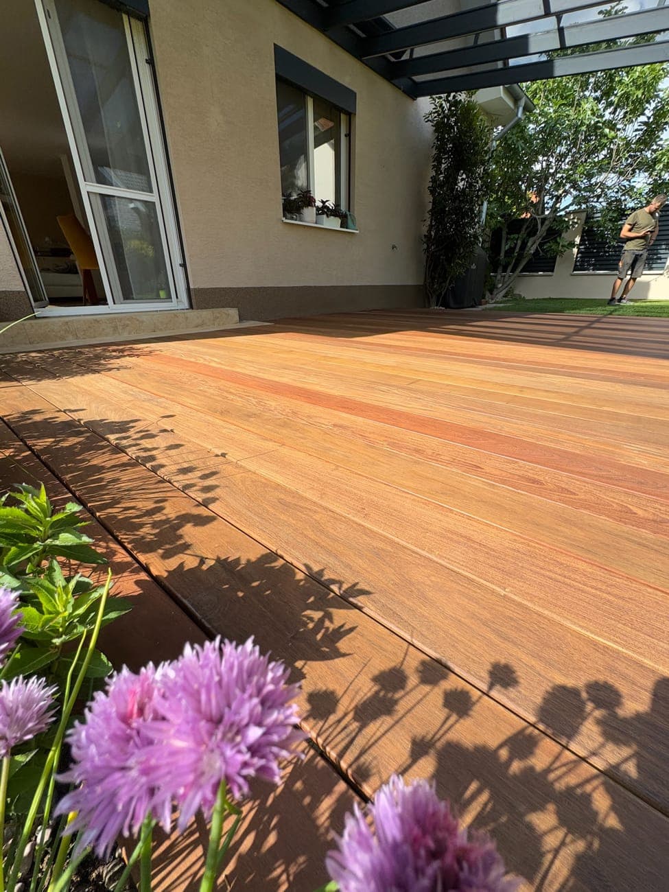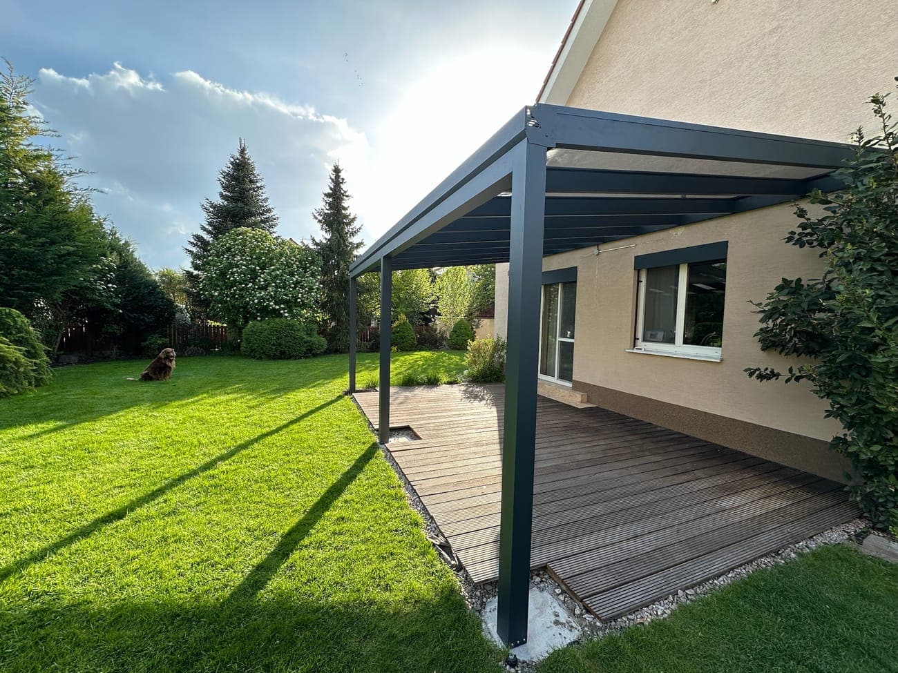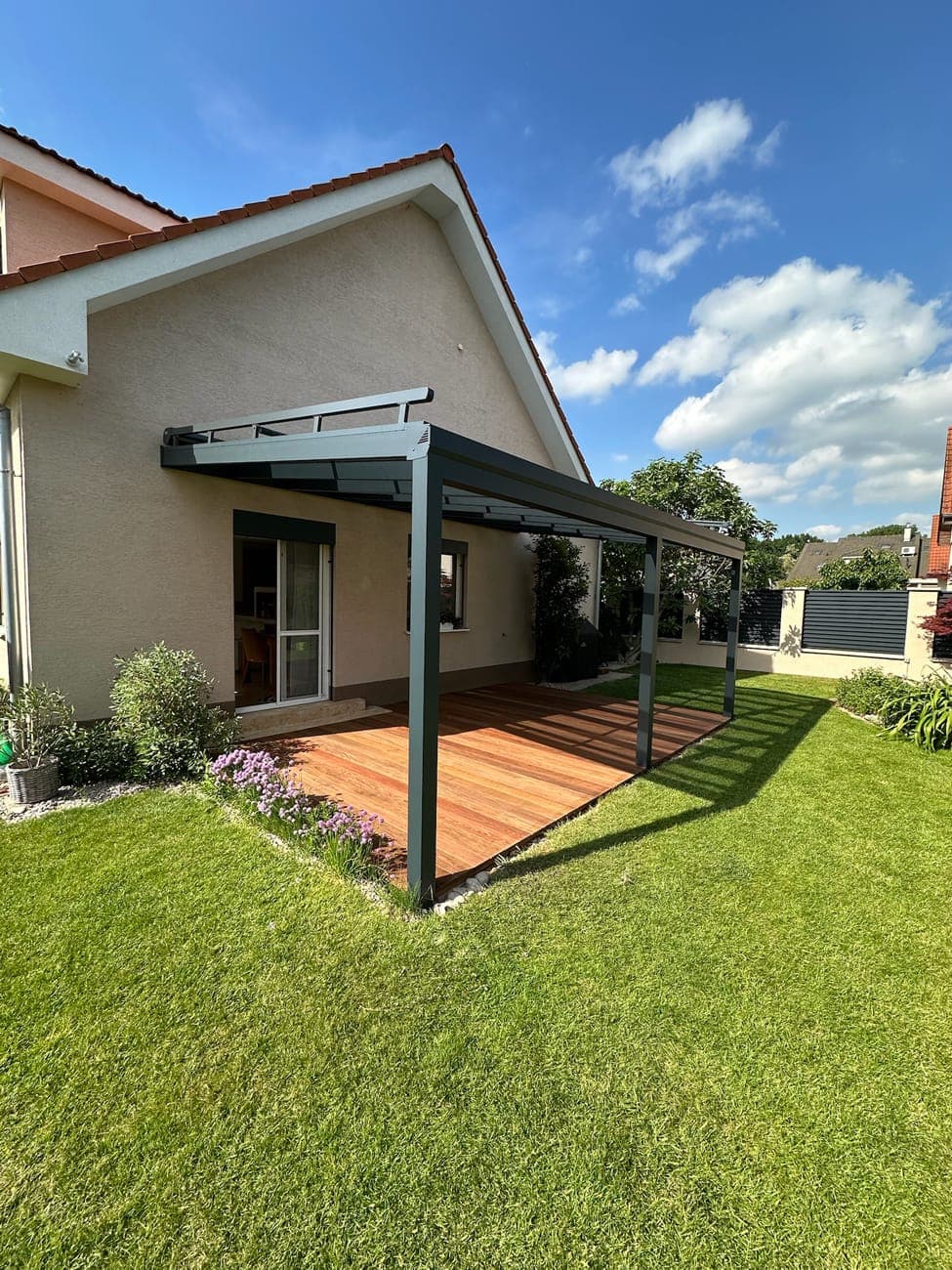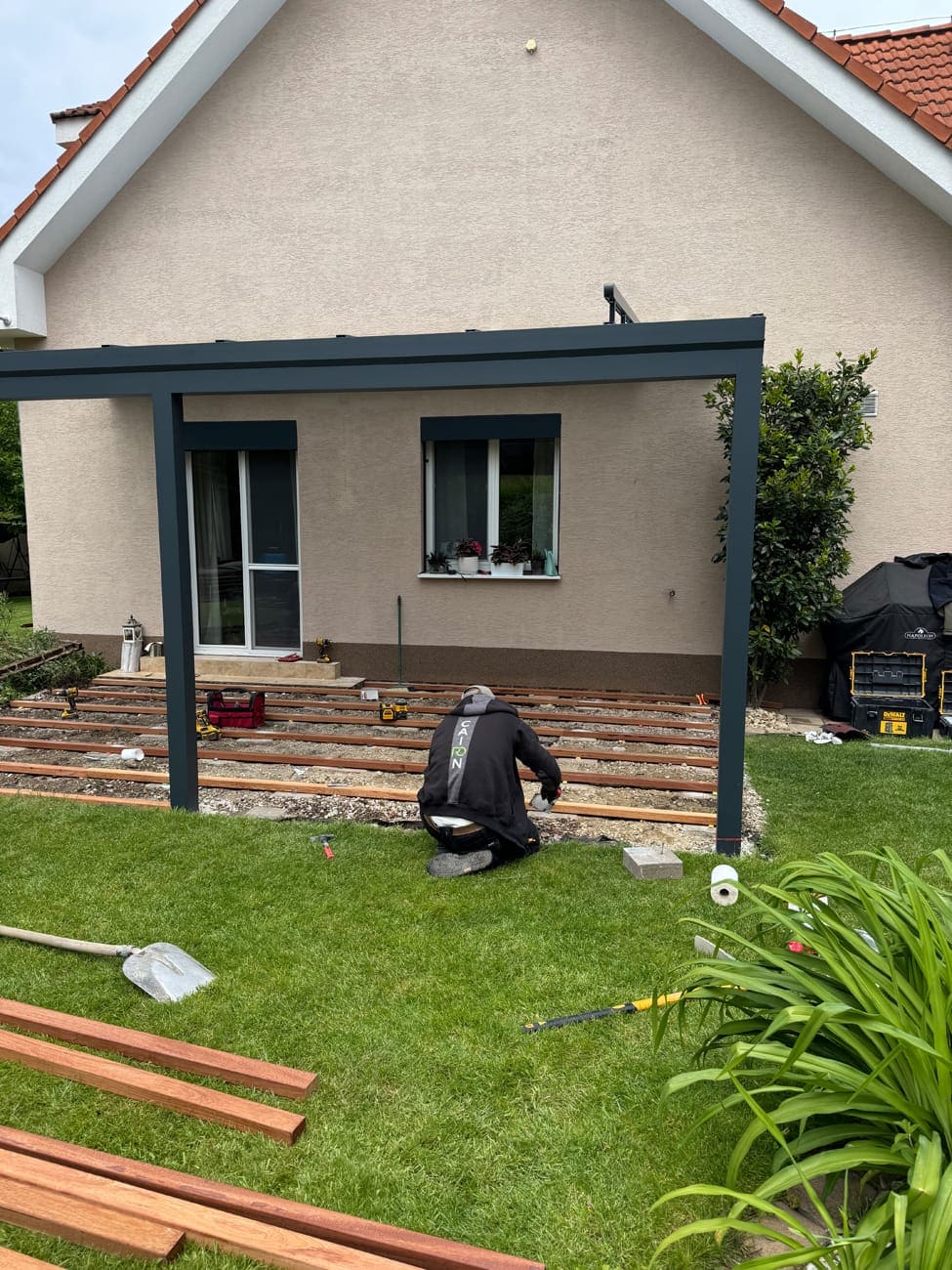 Hliníková pergola s dřevěnou terasou