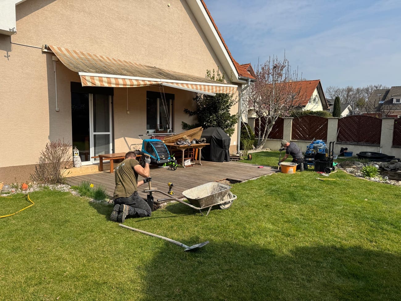 Pergola s dřevěnou terasou