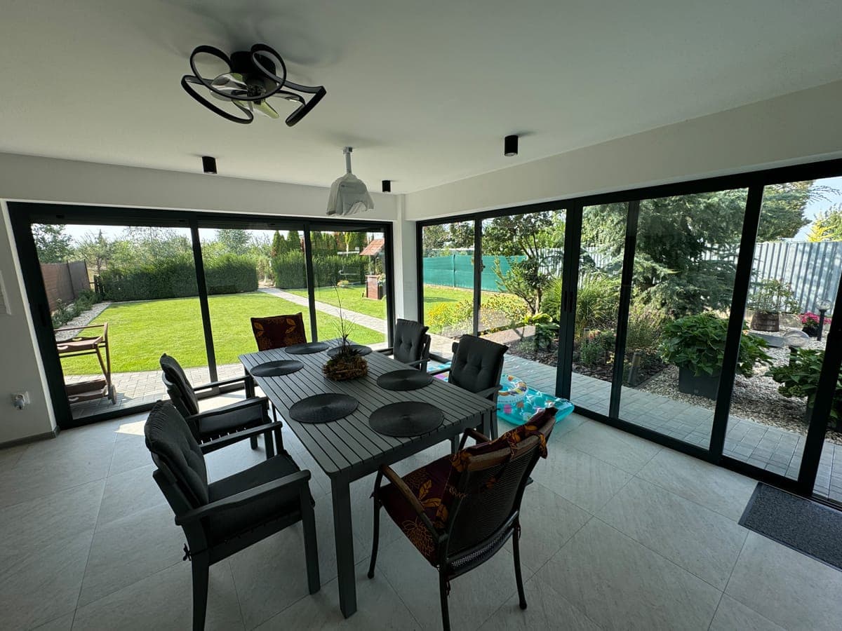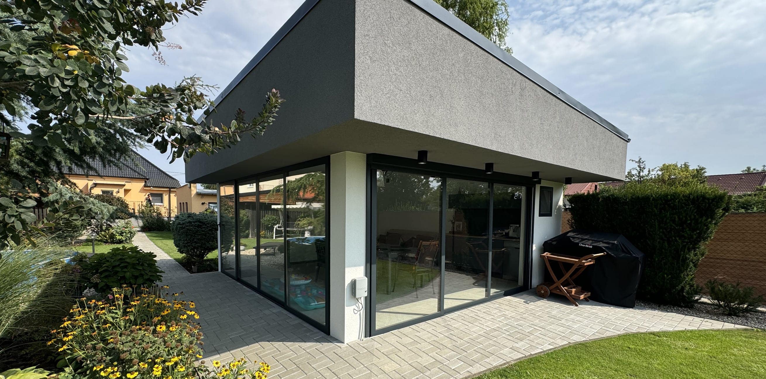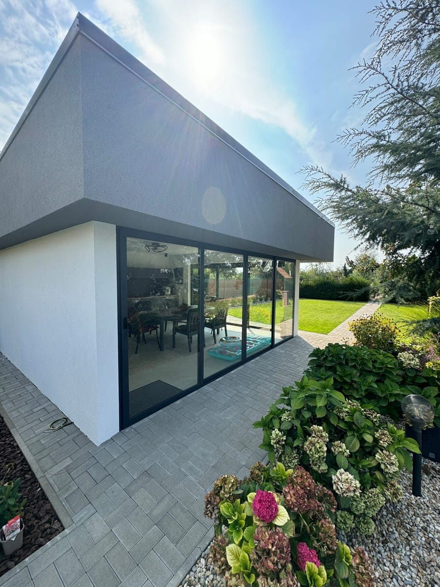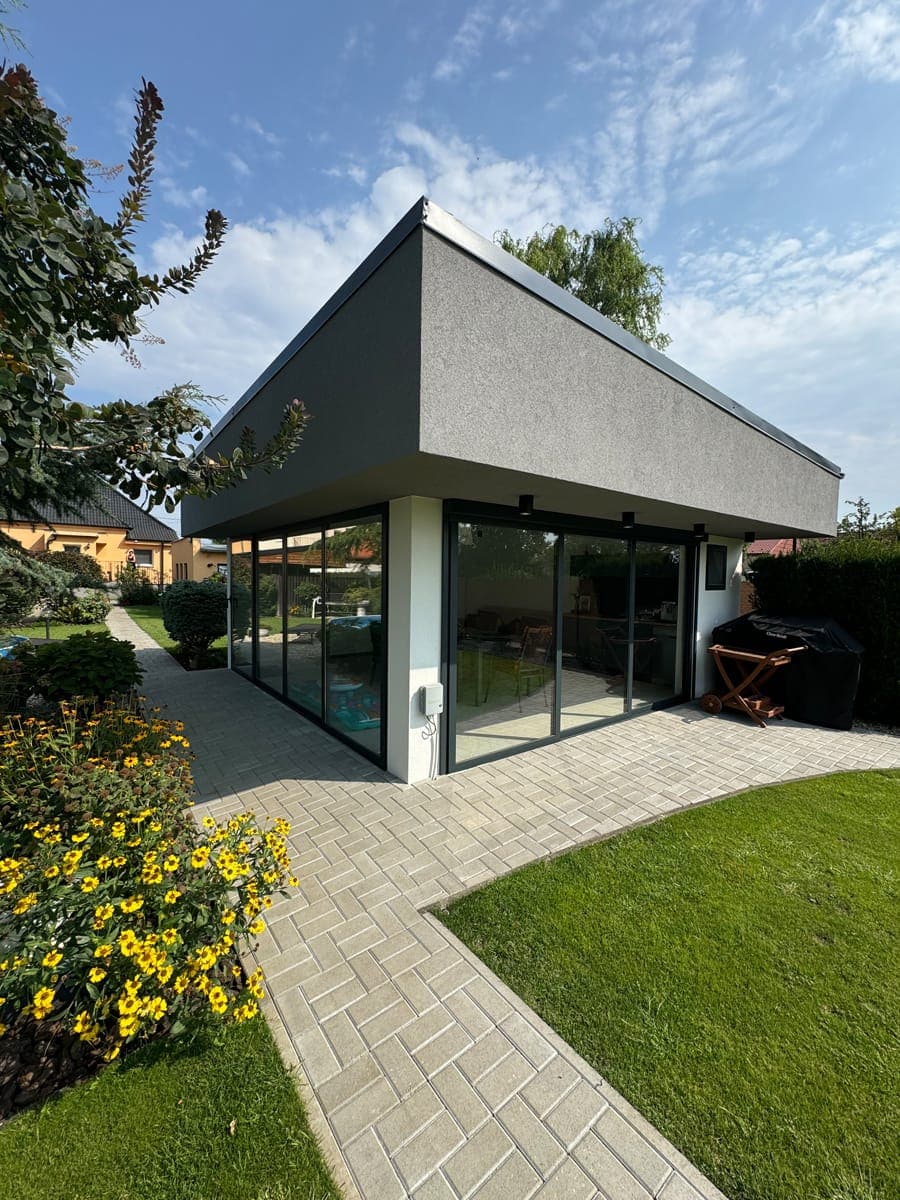 Moderní zasklení zahradního domku s posuvným systémem