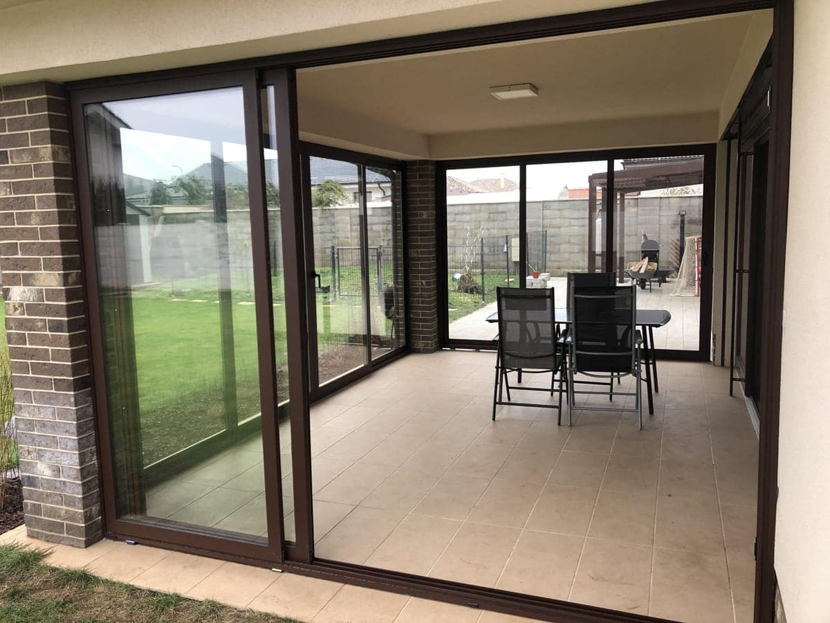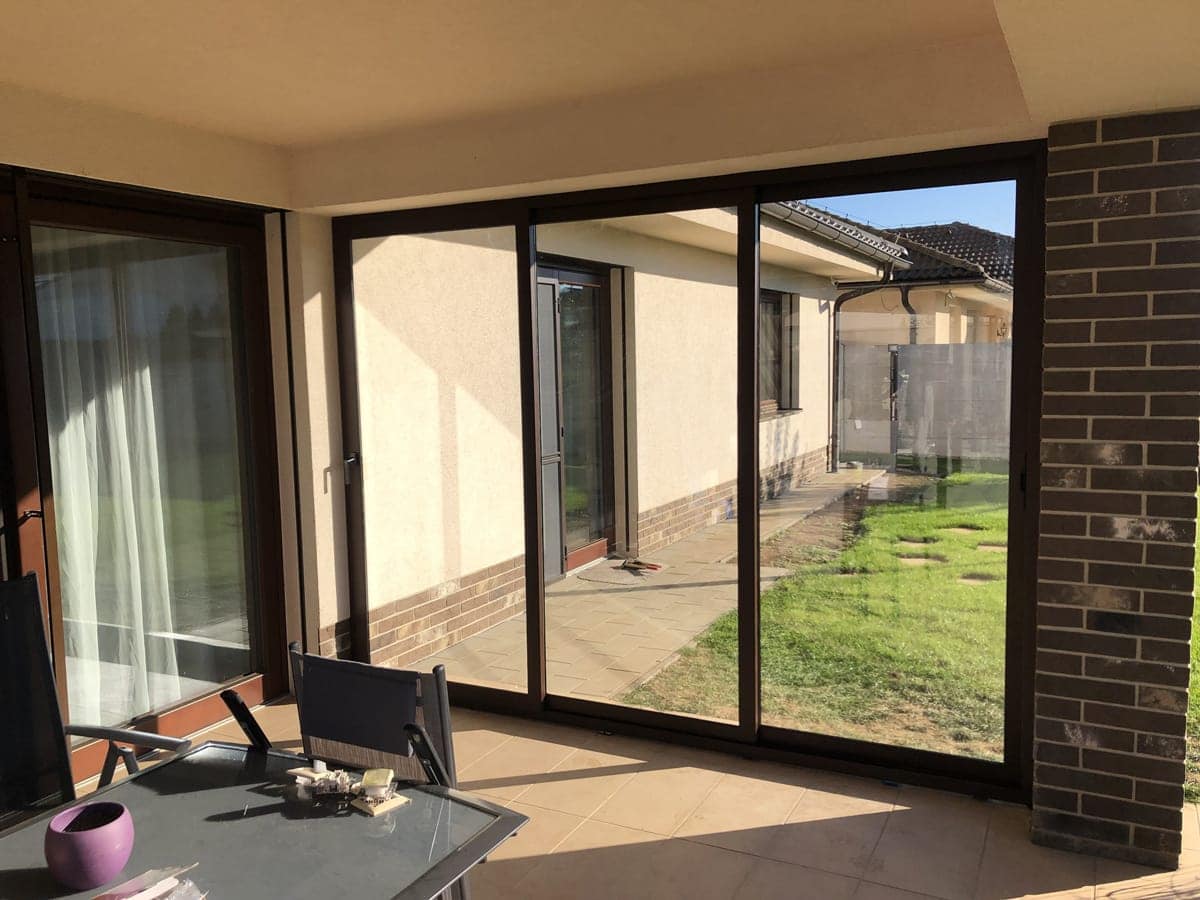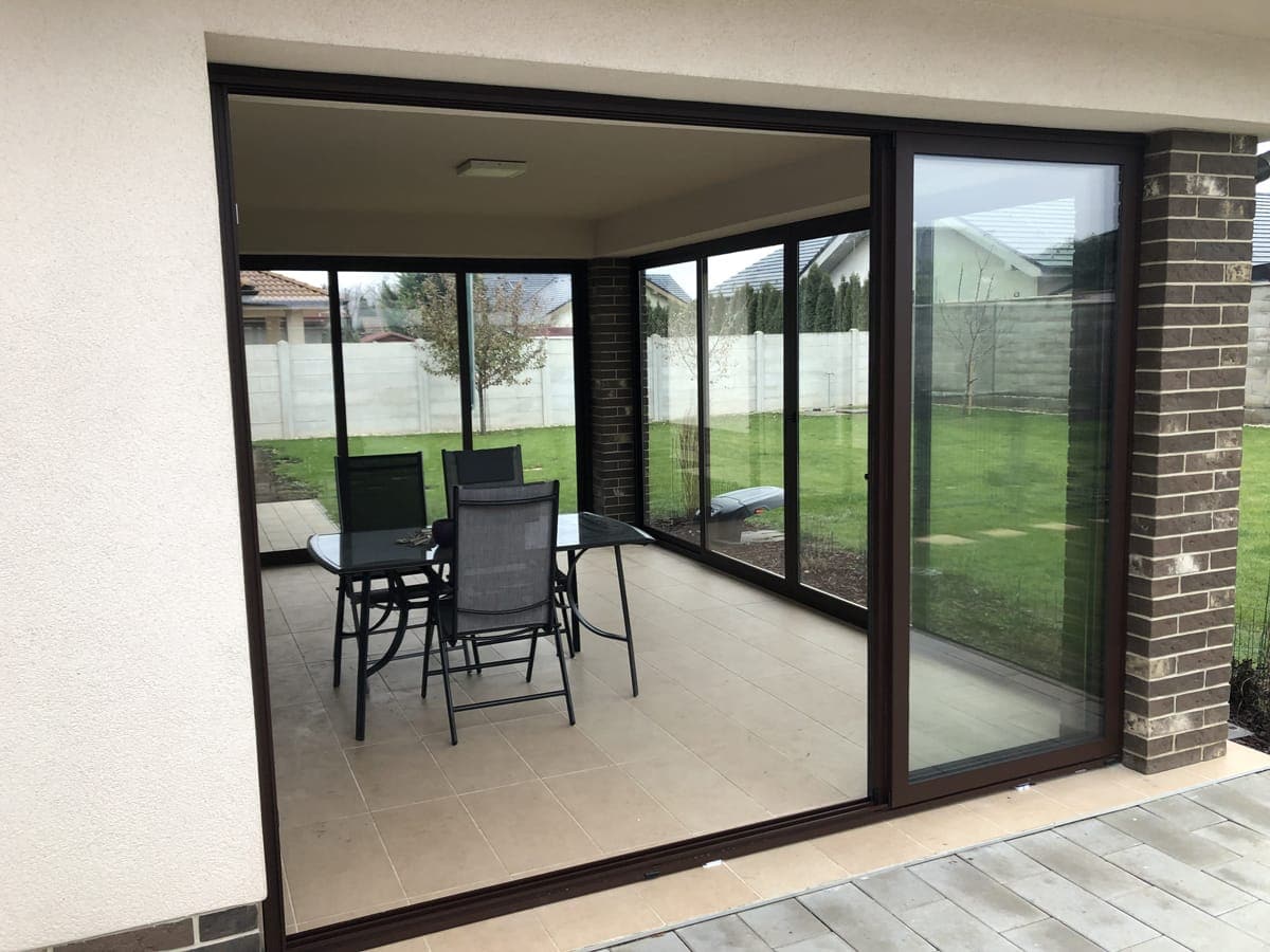 Při výrobě zasklení montujeme posuvný systém, který je možné otevírat posunutím do stran, přičemž jednotlivá křídla zapadají za sebe. Tento posuvný systém slouží také pro větrání zaskleného prostoru.