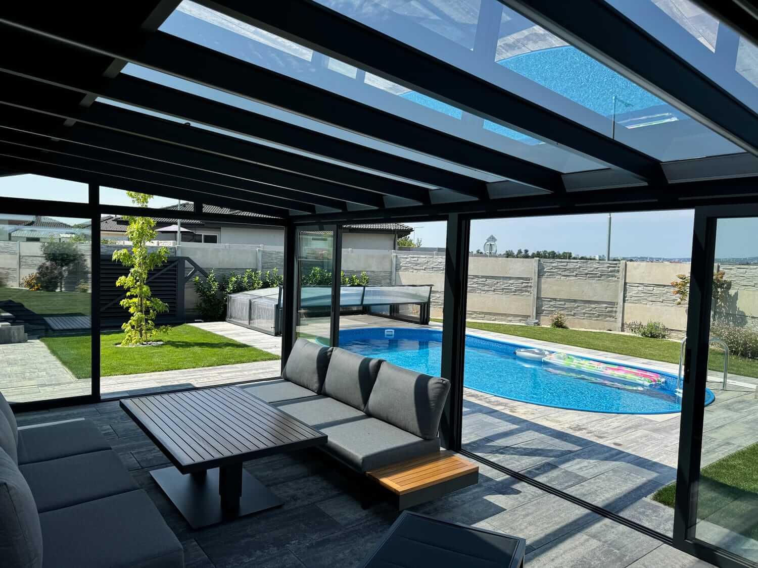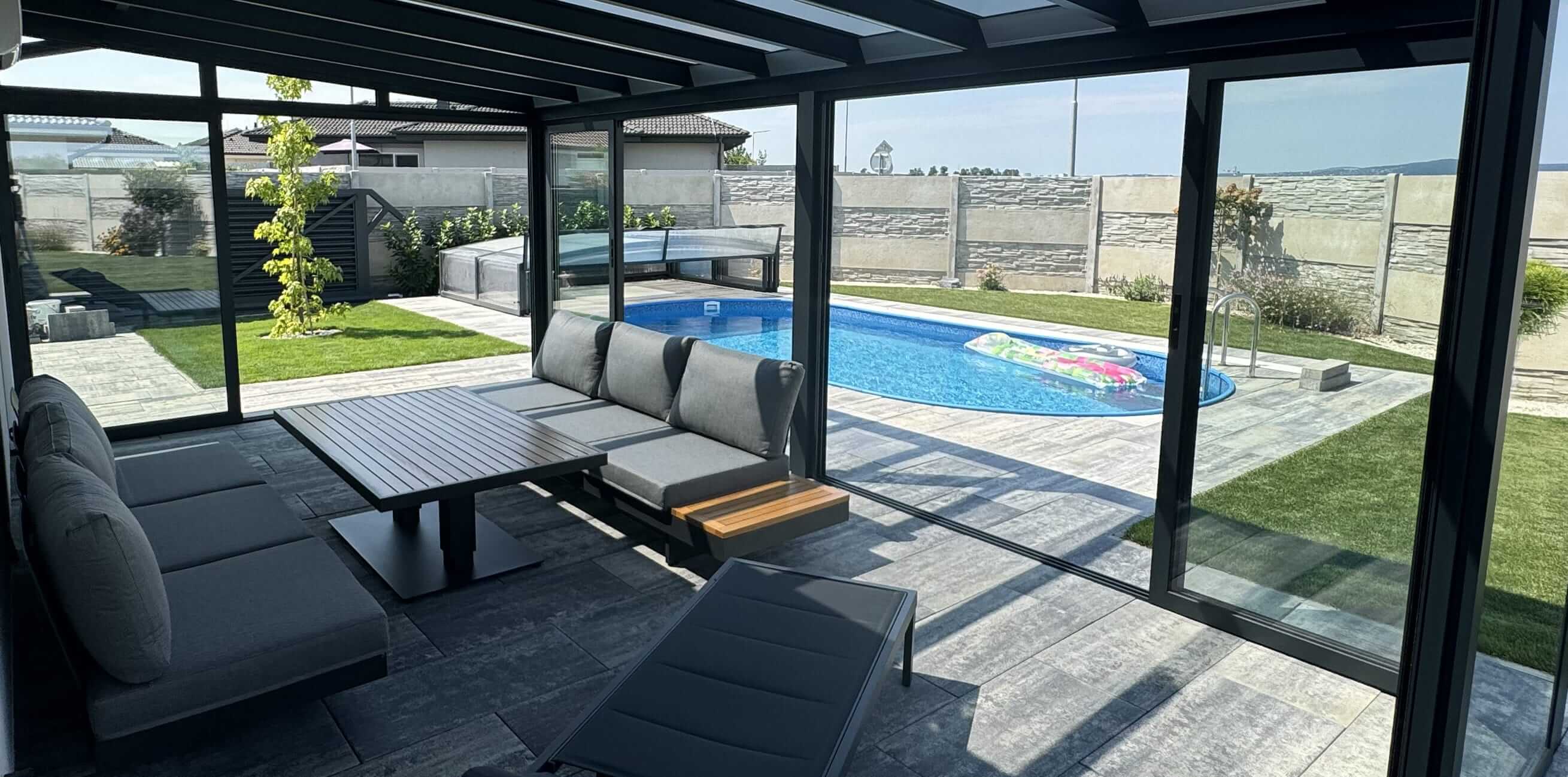 V případě výběru polykarbonátu nebo skla vám nabízíme možnost střechu dodatečně stínit.