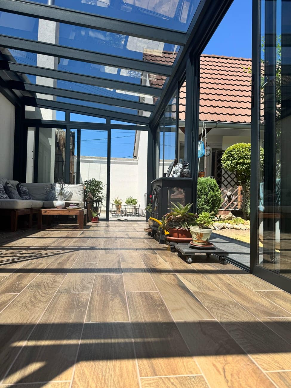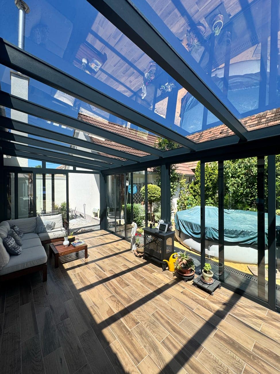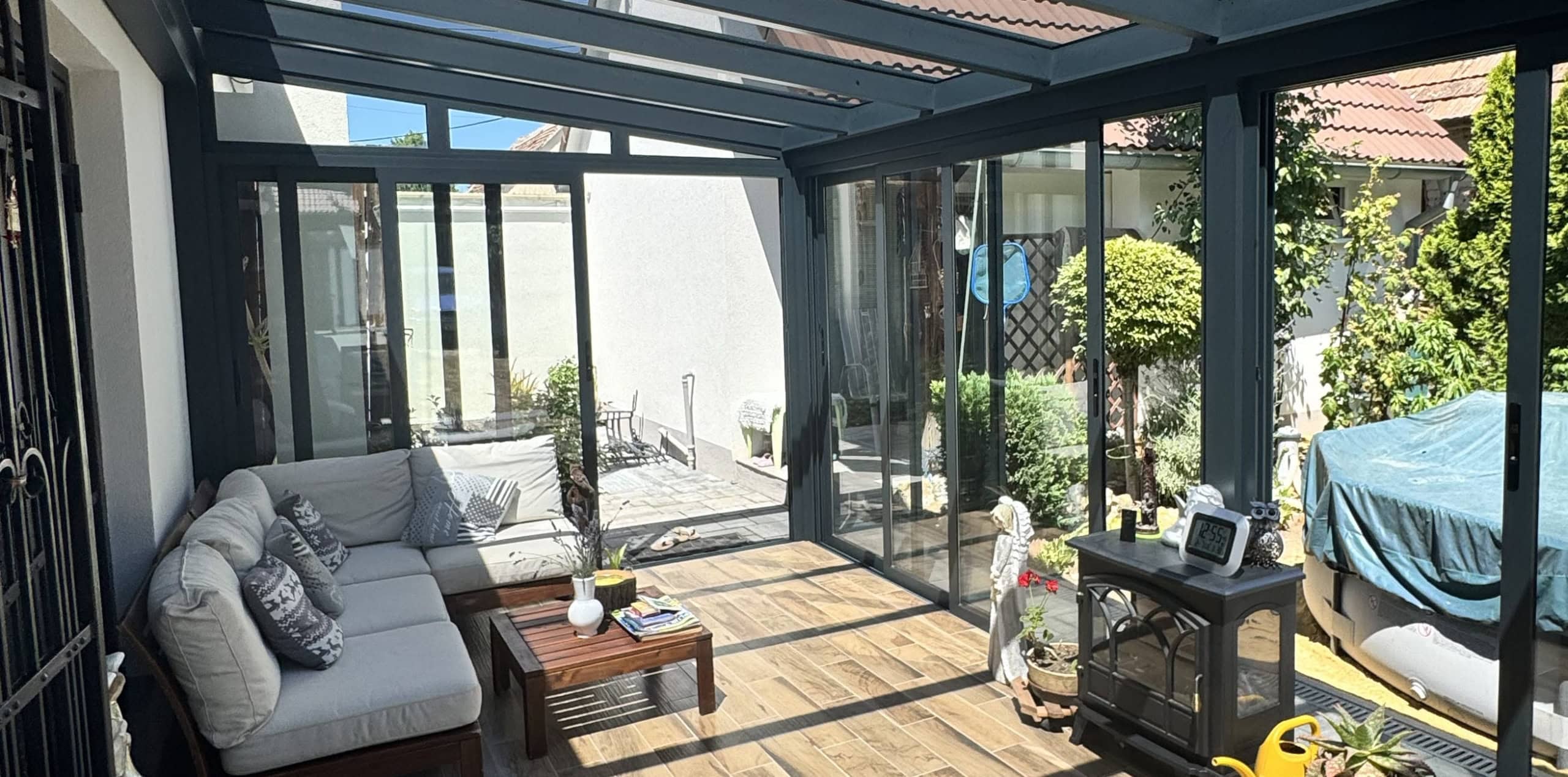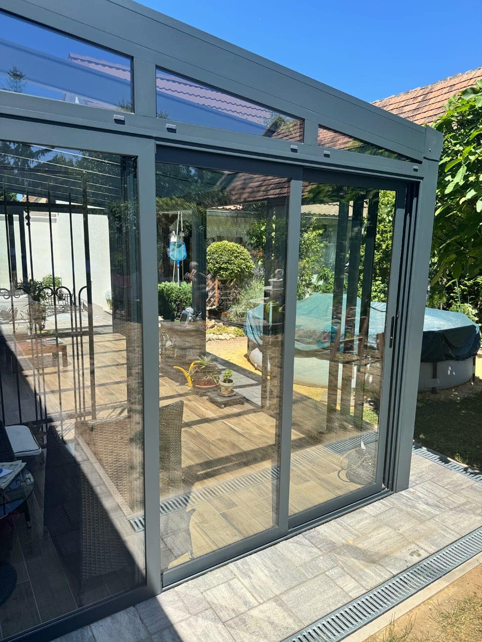 V případě výběru polykarbonátu nebo skla vám nabízíme možnost střechu dodatečně stínit.