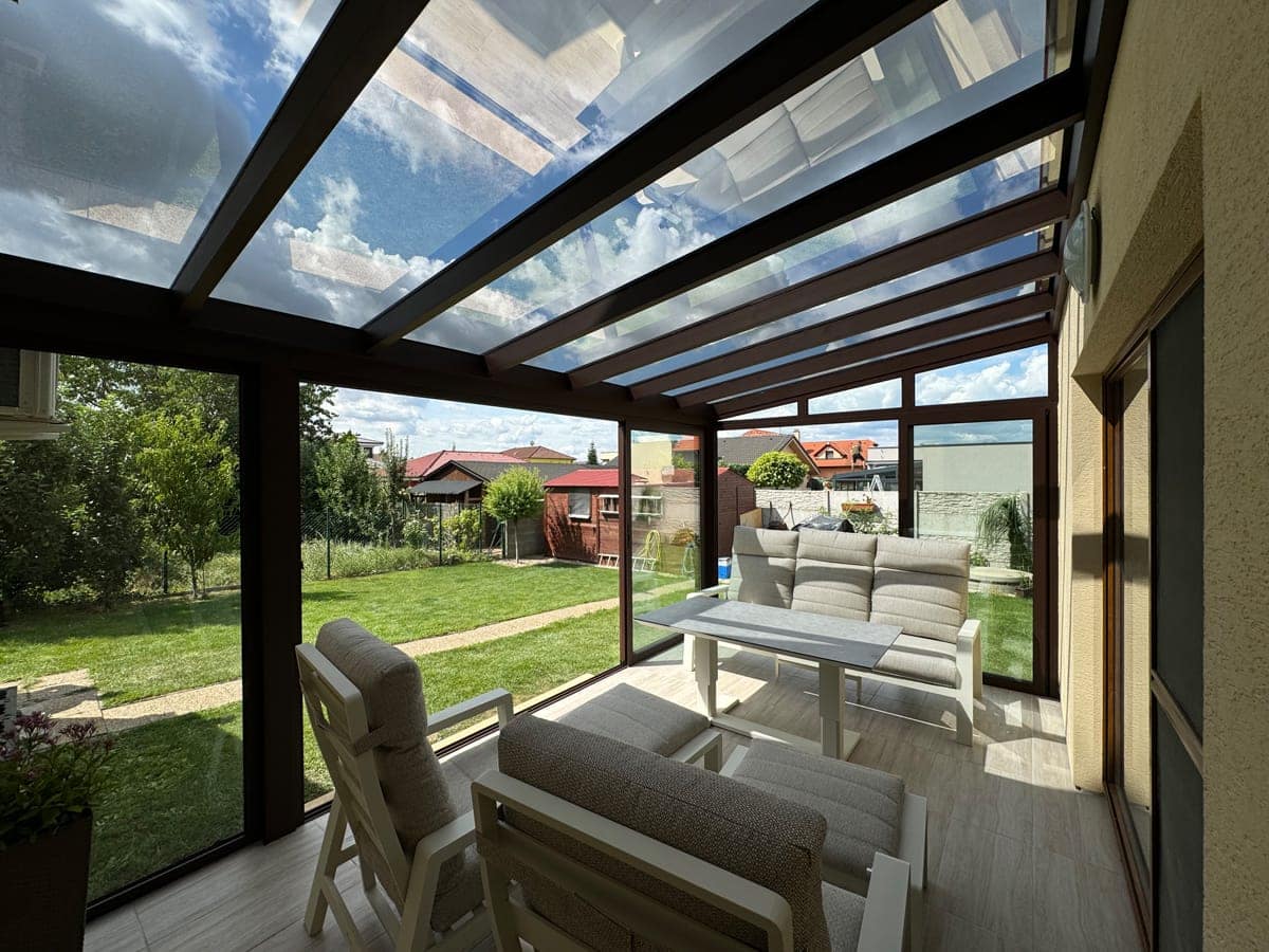 V případě výběru polykarbonátu nebo skla vám nabízíme možnost střechu dodatečně stínit.