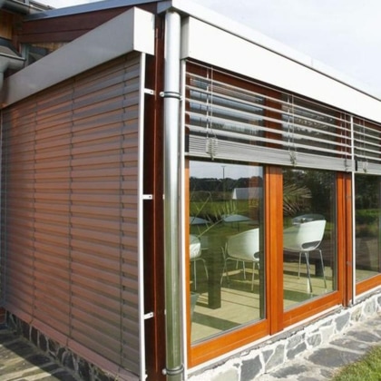 Zajistí dokonalý způsob zakrytí oken, umožní vám vidět a nebýt viděni. Zajistí stín, ale i tepelnou regulaci budovy. Řeší i úniky tepla přes skleněnou terasu.