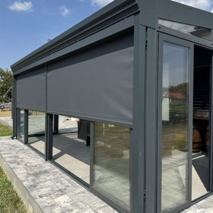 Bezrámový posuvný systém je vhodný pro zasklení zimních zahrad, pergol či balkonů a s 10 mm tvrzeným sklem dokáže pokrýt prostory až do výšky 2,60 m. Jeho kolejnicový systém umožňuje pohodlné otevírání a zavírání prostoru.